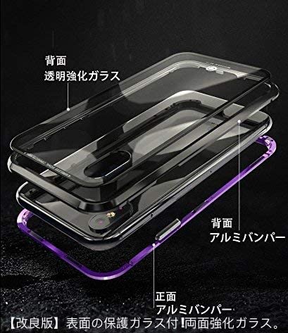【追跡番号ありメール便】iPhone X ケース カバー アルミ バンパー 背面ガラス アイフォン 透明 強化ガラス バックプレートマグネット式 磁力で接続 QI ワイヤレス 充電対応 軽量 薄型 スマホケース 擦り傷防止 耐衝撃保護