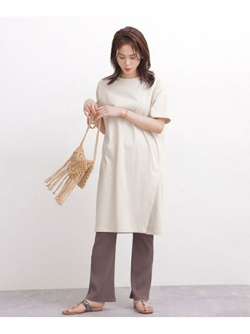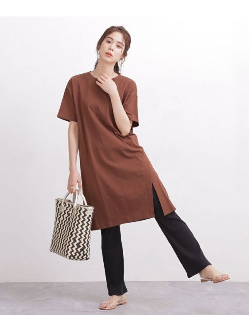 nano・universe(ナノユニバース)WEB限定/サイドスリットワンピース×リブパンツセットシンプルなワンピース×リブパンツのセットアイテム。