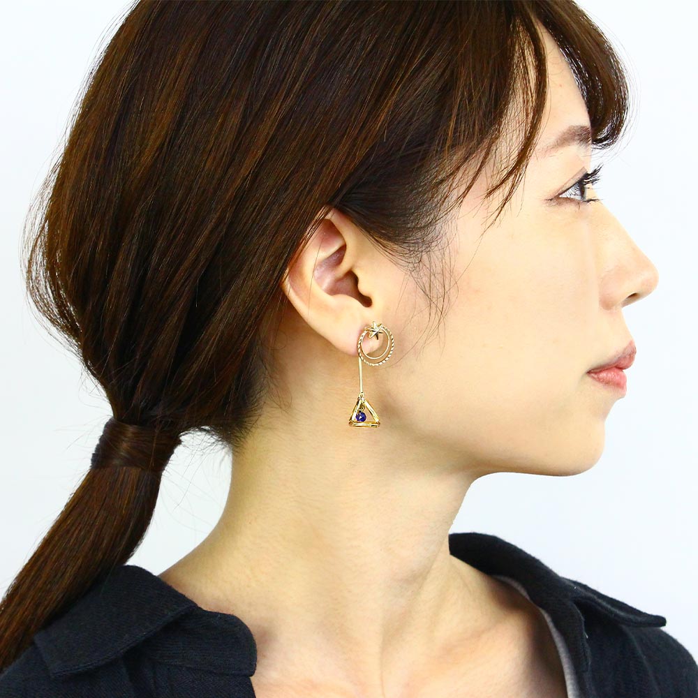 “飾る”をテーマに表現した宇宙モチーフのアクセサリー虹色の石と三角の星座がゆらゆらと揺れ動きます。