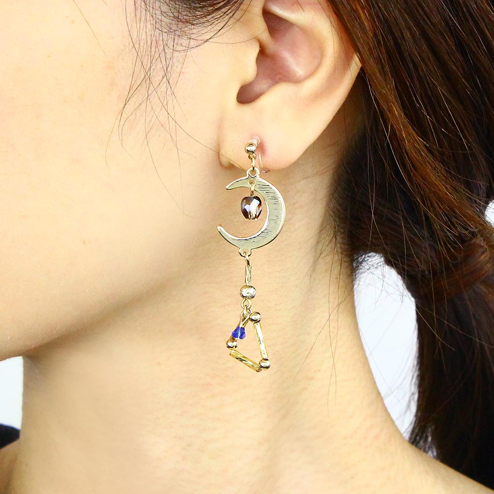 【送料無料】ノンホールピアス 三日月と星の揺りかご イヤリング 樹脂タイプ[お世話や][osewaya] | アクセサリー レディース 女性 大人 プレゼント ギフト 結婚式 誕生日 おしゃれ オシャレ かわいい 可愛い シンプル 20代 30代 40代 50代