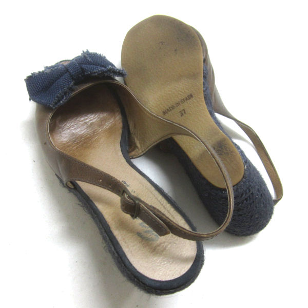 【37】ガイモ/GAIMO前リボン ウェッジソールサンダル★紺茶/N【中古】