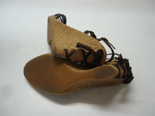 【中古】【あす楽可】【panic】ウエッジソール バックレースアップリボン付き ストラップサンダル☆23cm程度/ダークブラウン