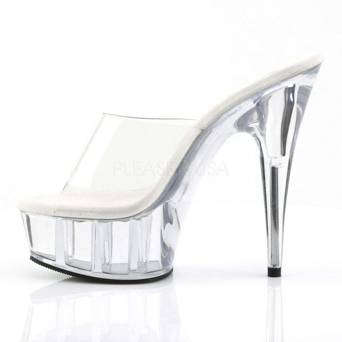) かかとからつま先までの長さ 約23.5cm 最大幅 約9cm 甲の部分の外周 約21.5cm クリアヒール 厚底ミュールサンダルの詳細 ブランド: Pleaser(プリーザー) 品番: DELIGHT-601 (DEL601/C/M) 色: クリア/クリア ヒール: 約14cm ソール: 約4cm カテゴリ: レディース 靴 シューズ ハイヒール サンダル 用途: 衣装 コスプレ パーティー イベント ウェディング 結婚式 【発送情報】 ■送料 宅配便:無料