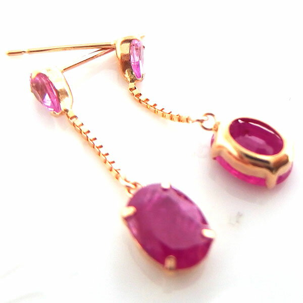 【送料無料】鑑別付きK18PGルビーピンクサファイアブラピアス■8889