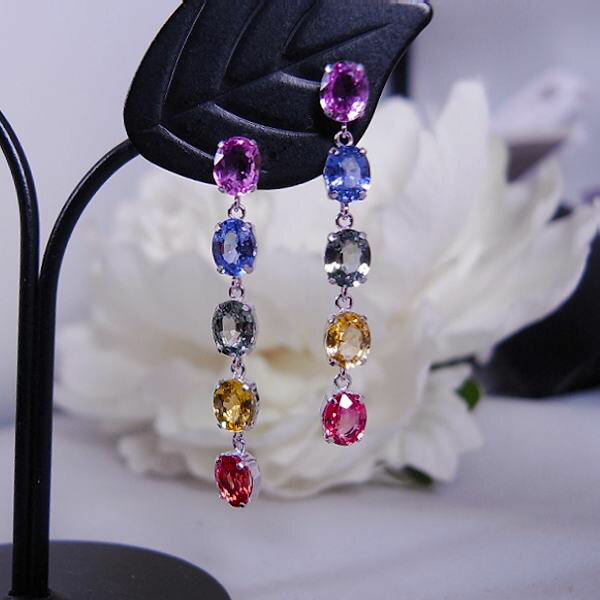 ★注文★【送料無料】k18WGマルチカラーサファイア2.0ctロングピアス■9924