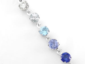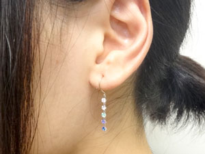 キュービックジルコニアからブルーサファイアへと変わっていく魅力的なピアスです。