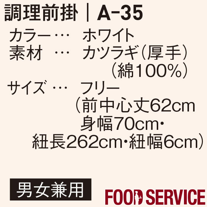 【メール便可】調理前掛 A35 フリーサイズ ホワイト 男女兼用 飲食店 割烹 和食 レストラン 厨房 調理 白衣 制服 ユニフォーム エプロン 腰下エプロン 調理前掛 SerVo(サーヴォ)/SUNPEX IST(サンペックスイスト) FS